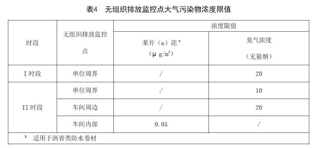 苯并芘和臭氣濃度無組織排放執(zhí)行表4規(guī)定。