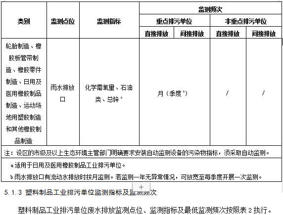 表1橡膠制品工業排污單位廢水排放監測點位、監測指標及最低監測頻次