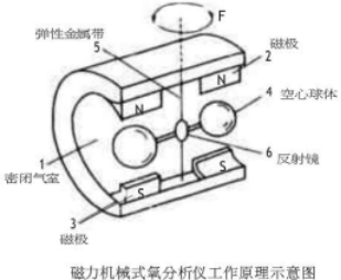 基本原理:其工作原理是基于氧的順磁性,一個(gè)小的逆磁性的啞鈴懸掛在非均勻磁場中,當(dāng)被測氣體中有氧氣存在時(shí),氧分子受磁場吸引導(dǎo)致啞鈴旋轉(zhuǎn)、補(bǔ)償力矩的張力要將啞鈴維持在原來的位置,張力的大小與樣氣中的氧分壓成正比。被測氣體氧含量不同,旋轉(zhuǎn)力矩和復(fù)位力矩的平衡位置就不同,也就是啞鈴的偏轉(zhuǎn)角度就不同,這樣,啞鈴偏轉(zhuǎn)角度的大小,就反映了被測氣體中氧含量的多少。對啞鈴球偏轉(zhuǎn)角度的測量,大多是采用光電系統(tǒng)來完成的。