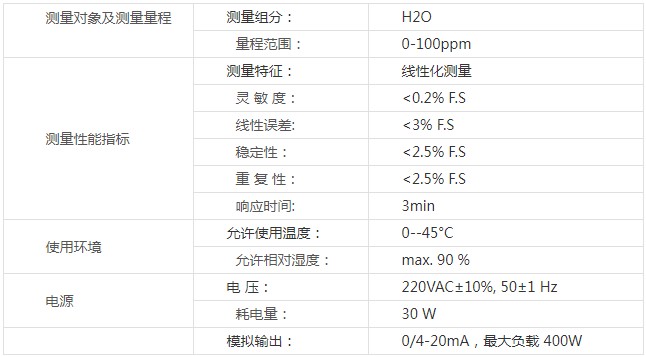 基本原理:傳感器采用五氧化二磷電解法原理,此傳感器由一個(gè)玻璃材質(zhì)的圓柱和兩根并行的電極(通常由鉑或銠金屬絲制成)組成,并在兩根電極之間涂有很薄的一層磷酸膜層。在兩電極間施加一直流電壓,氣體中的水分被作為吸濕劑的五氧化二磷膜層連續(xù)吸收,生成磷酸,并被電解為氫和氧,同時(shí)五氧化二磷得以再生。通過連續(xù)的電解過程,在樣氣的水分含量與電解后的水分之間建立平衡,電解電流與樣氣中水分含量成比例。
